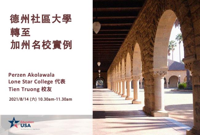 美國社區大學的優點就是在就讀兩年之後可以插班到四年制大學的大三,不只可以申請插班到本州的大學,甚至也可以插班到其他州的大學。我們特別邀請到德州休斯頓Lone Star College畢業的Tien Truong來分享他從社區大學同時申請到加州UC Berkeley及UCLA的經驗,Lone Star College的代表同時也會參與,一同回答同學們的問題。(全程英語)