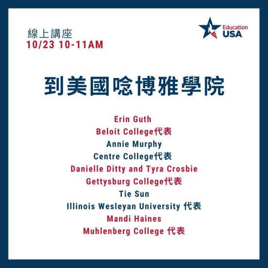 2021/10/23 (六) [線上講座] 到美國唸博雅學院