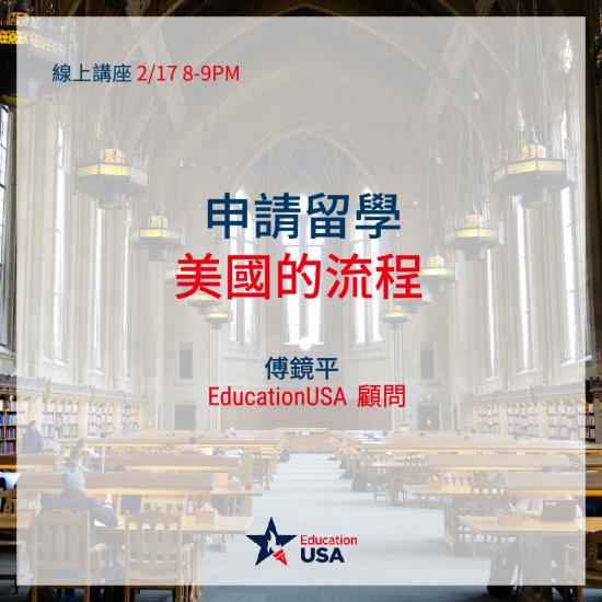 2022/2/17(四) [線上講座] 申請留學美國的流程 8pm-9pm