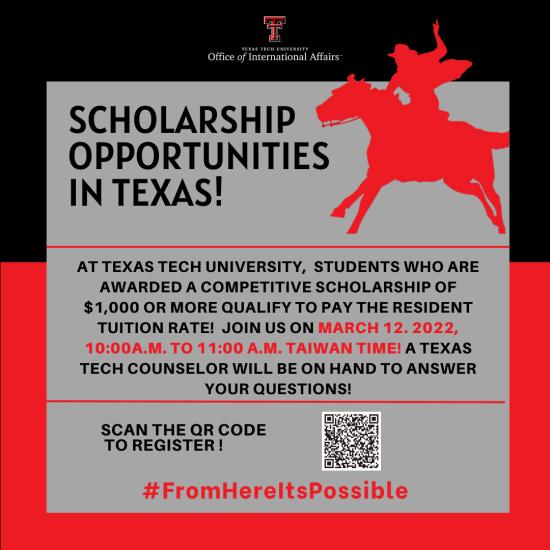 2022/3/12 (六) [線上講座] 到德州拿獎學金 10am-11am