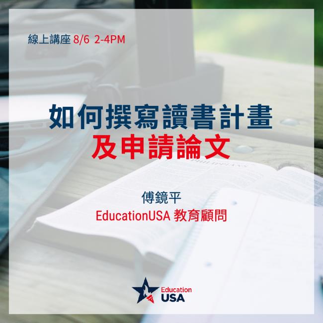 你是否有著一顆嚮往到美國學習的心,卻苦惱著不知道該如何書寫讀書計畫(SOP)與申請論文(essay)嗎?若您正在為上述問題苦惱,我們邀請您一同參與此次講座。該講座為高雄市立圖書館河堤分館與本中心共同合作舉辦,本中心教育顧問傅鏡平先生將會於講座中告訴大家如何撰寫出一份好的讀書計畫,以及申請論文書寫上的小訣竅。透過他的專業分享,想必能為大家排除掉各種撰寫時的禁忌,並寫出令校方刮目相看的讀書計畫及申請論文。