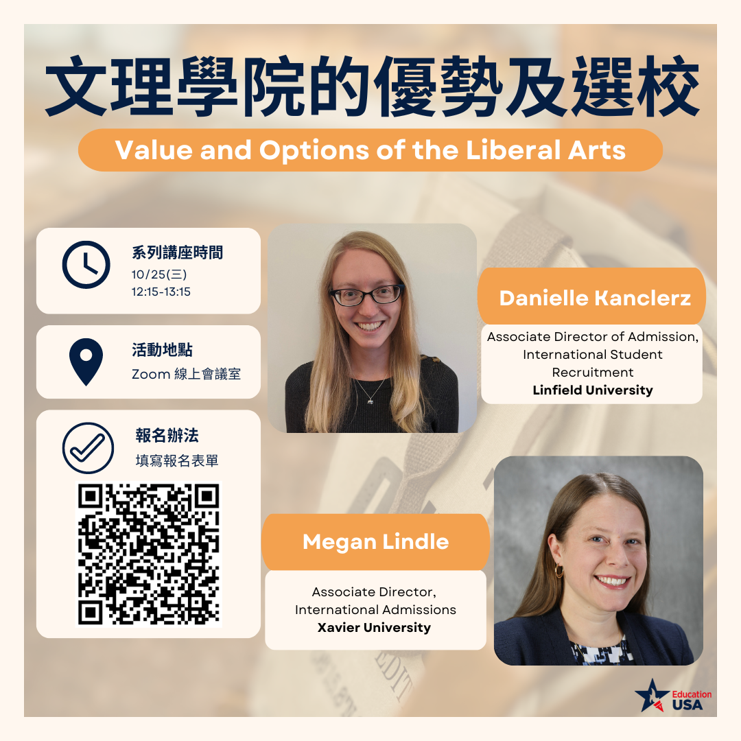 「Liberal Arts」文理學院,是美國大學教育的一個特殊範疇,強調跨學科學習,鼓勵學生探索不同領域的知識。我們有幸邀請到 LinfieldUniversity 和 XavierUniversity 的國際生招生部副主任,為大家解釋文理學院的優勢,以及如何選擇合適的學校!