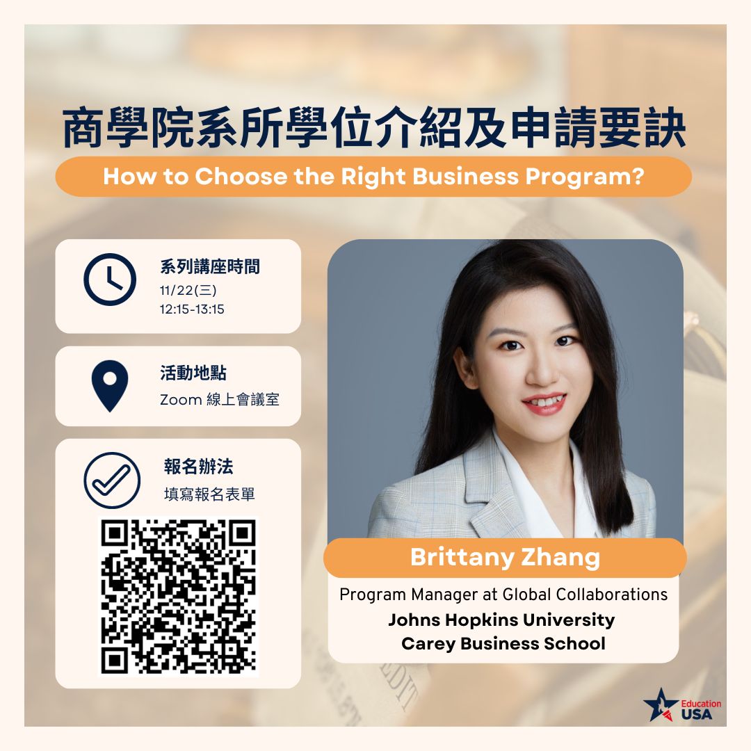 - 講者:Brittany Zhang (開瑞商學院 Johns Hopkins University Carey Business School 全球合作項目經理)