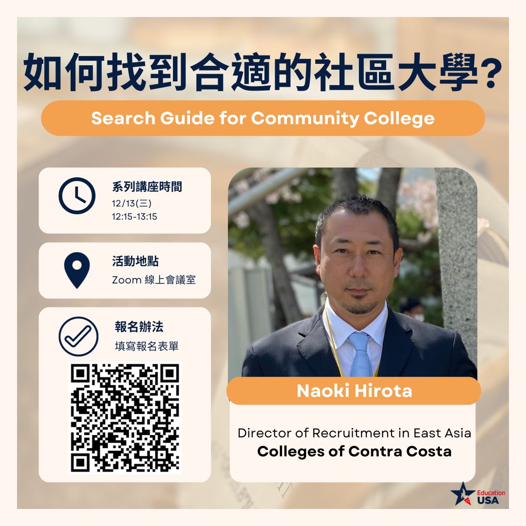 • 講者:Naoki Hirota (康特拉柯斯塔社區大學 Colleges of Contra Costa 東亞招生總監)