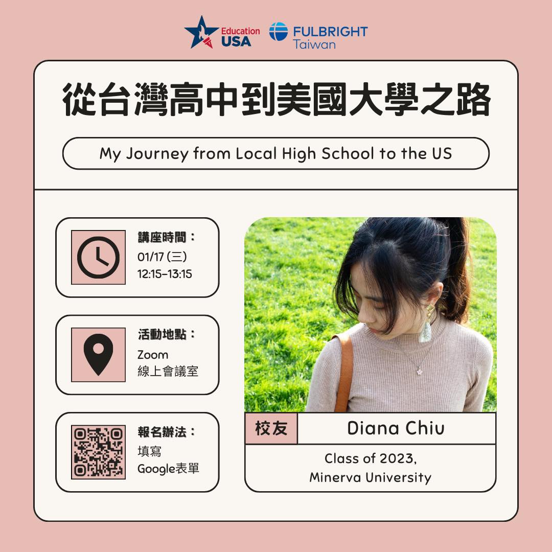 • 講者:Diana Chiu(Minerva University 2023年畢業生)