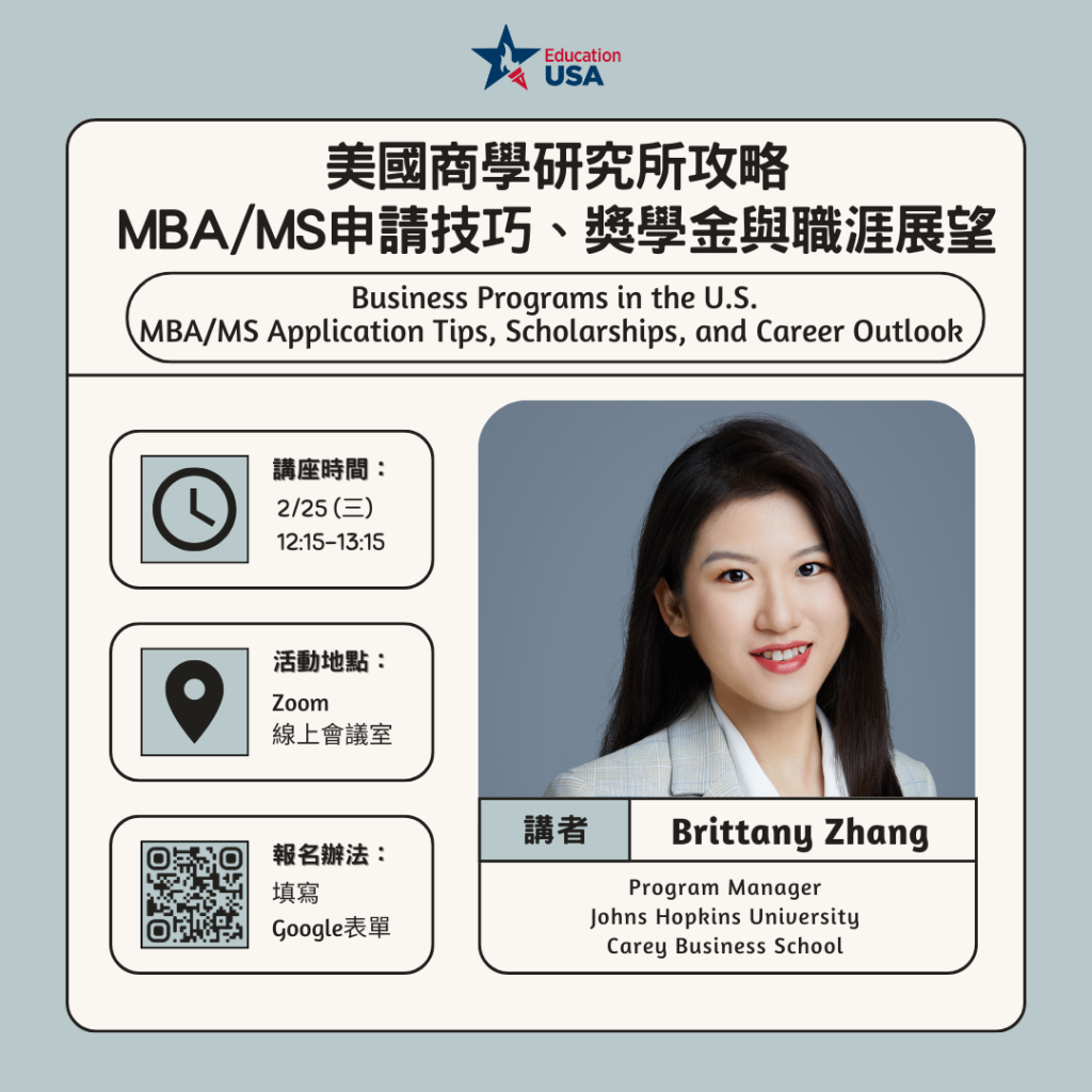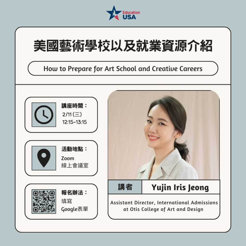 Posted by Chelsie Kuan 1 min read 2026/2/25 (三) [線上講座] 美國商學研究所攻略:MBA/MS 申請技巧、獎學金與職涯展望 講座活動 Posted by Chelsie Kuan 1 min read 2026/2/11 (三) [線上講座] 美國藝術學校以及就業資源介紹 講座活動 Posted by fseintern 1 min read 2026/1/31 (六) [線下講座] 2026留美教育趨勢與數據分析領域專業分享 講座活動 Posted by fseintern 1 min read 2026/1/14 (三) [線上講座] 加州留學指南—UC、CSU、社區大學與轉學制度一次搞懂 講座活動 Posted by fseintern 1 min read 2025/12/24 (三) [線上講座] 留學美國顧問Q&A專場 講座活動 Posted by fseintern 1 min read 2025/12/17 (三) [線上講座] 美國帶薪實習介紹與AI碩士申請指南 講座活動 Posted by fseintern 1 min read 2025/12/10 (三) [線上講座] 美國音樂學院與面試的準備指南 講座活動 Posted by fseintern 1 min read 2025/12/3 (三) [線上講座] 美國藝術學校以及就業資源介紹 講座活動 Posted by fseintern 1 min read 2025/11/15 (六) [線下講座] 教育部 TaiwanGPS 留遊學宣導說明會|北部場 講座活動 123